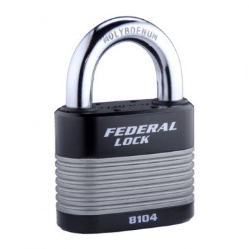FPAD0045/27 FEDERAL 8104/27 63MM HEAVY LAMINATED PADLOCK • Quality electric coated & baked painted body with anti-cut molybdenum shackle • Rekeyable & changeable 6 Pin Brass cylinder-Re-changeable shackle design • Anti-bump, anti-pick & anti-drill cylinder • Anti-UV PE Seal to prevent water ingress • Double stainless Steel ball locking • Supplied with 2 keys (Key blank is FCO007 6R0) • Finish: Laminated