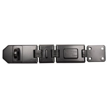 HFD025 FEDERAL 1084-BK SECURITY HASP WITH VERTICAL STAPLE • Hardened Steel material • Quality duplex nickel plating with black e-coating • Recessed and concealed mounting hardware • Ideal for reaching around corners • Best used for trailers, vans and moving trailers • Finish: Black e-coating Steel