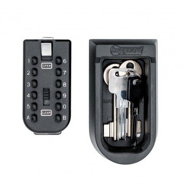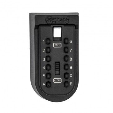 Burton Keyguard push button key safe. Superior push button key safe. Allows authorised persons to access a property. Easier to use than dial combination key safes. 12 button design offers a higher level of security than other push button key safes. Can also be used for storing single car keys inside the home. Holds keys up to 80mm long. Weather resistant rubber cover included.