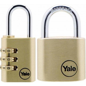OCI024 YALE Y110/Y150/30/2 BRASS PADLOCK & BRASS COMBINATION PADLOCK PACK • Contains Y110/40 Brass Padlock & Y150/30Brass Combination Padlock • Brass Padlock-double locking for increased security • Brass Combination Padlock-resettable 3 dial combination • Brass Padlock supplied with 3 keys (Key blank is YPADBLANK10) Brass Padlock Width 41mm, Shackle Dia 6mm, Shackle Horizontal Clearance 22mm & Shackle Vertical Clearance 22mm Brass Combination Padlock Width 31mm, Shackle Dia 4mm, Shackle Horizontal Clearance 14mm & Shackle Vertical Clearance 26mm