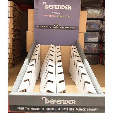 OUT069 SQUIRE CT10/DEFENDER DISPLAY C/W 12 PADLOCKS – Squire Defender Display and Header Card – Informative backing card – Space saving counter top display – Attractive design – Contains 2 each of SQD016 DFATL40, SQD006 DFBP4, SQD026 DFCOMBI40, SQD027 DFDC70, SQD032 DFLAM40 & SQD037 DFAL4 Defender Padlocks