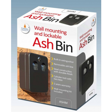 Cathedral wall mounted ash bin – black. H200mm X W160mm x D85mm. • Lockable, Steel Ash Bin for wall mounting with removable Ash Box • Built-in extinguishing • Steel construction with durable finish • Cylinder lock • Supplied with 2 keys • Complete with wall mounting kit