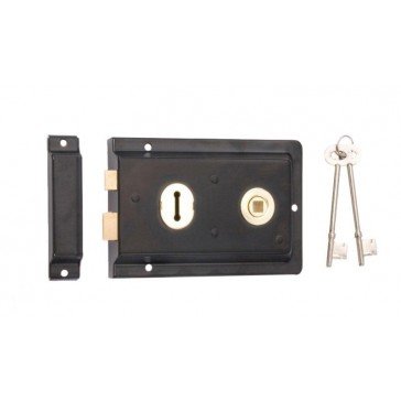 Double handed, surface fitted sash lock with boxed striking plate. Suitable for internal, shed and cupboard doors etc.