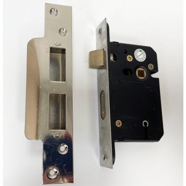 A UK manufactured BS five lever mortice lock. 20mm bolt throw with rotating steel pins to protect against sawing attack. Hardened anti drill plates. Five lever mechanism is protected from picking by internal shroud. Supplied with 2 keys and screws