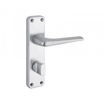 Satin aluminium budget bathroom lever door handle. For use with bathroom sash lock or tubular latch. Supplied with fixings.